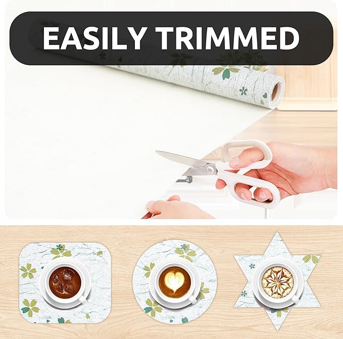 - Elegant Design - The differences of shelf liner between ours and the others is appearance designs. We will take into account the needs of customers for aesthetics. Therefore, to instead of regular plain shelf liners, we thought about European style design, use our shelf liner to decorate your refrigerator, shelf, kitchen, bathroom.