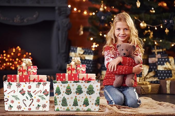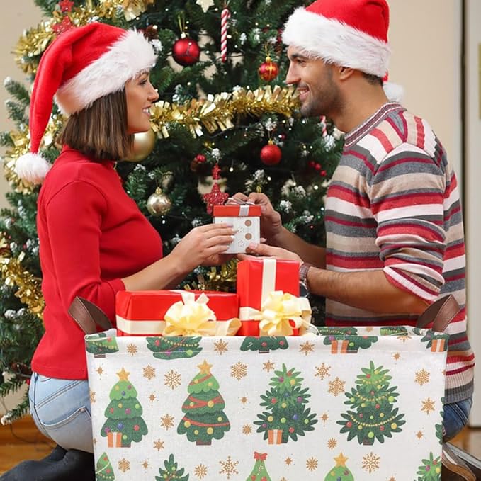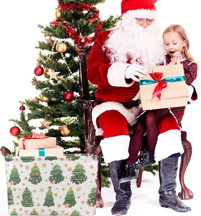 Rectangle Christmas Basket,Candy Storage Basket with Handles,Kids Gift Storage Box,Cute Canvas Organizer Bin for Pet,Books Basket,Toys Bin,Gift Baskets(Christmas Tree)