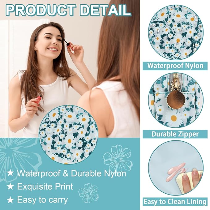- 【Superior Quality】The floral makeup bag is made of lightweight and durable high quality nylon. It is waterproof and easy to clean, helping to protect your cosmetics and toiletries from water spill accidents.