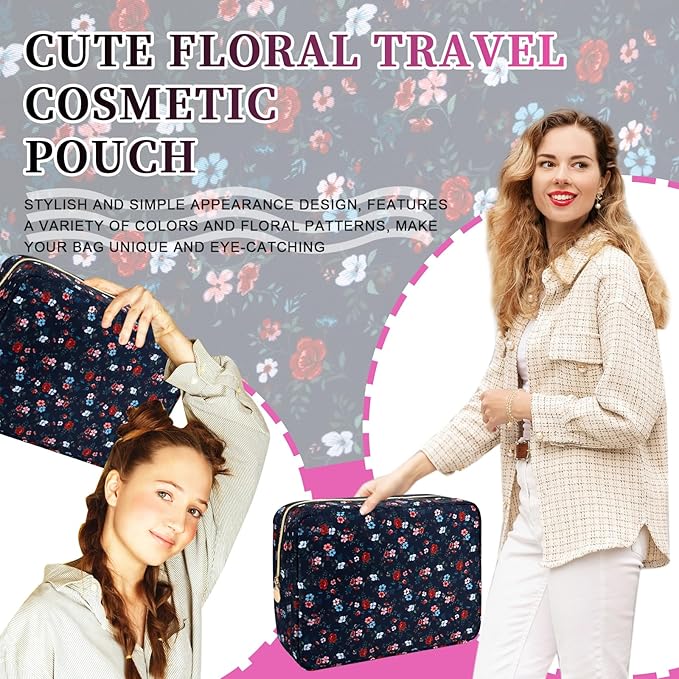 - 【Widely Application】Cute floral cosmetic pouch is big enough to carry cell phones, portable chargers, wallets, keys, sunglasses, cosmetics, etc. Suitable for stadiums, arenas, soccer games, any sporting events, parties, etc.