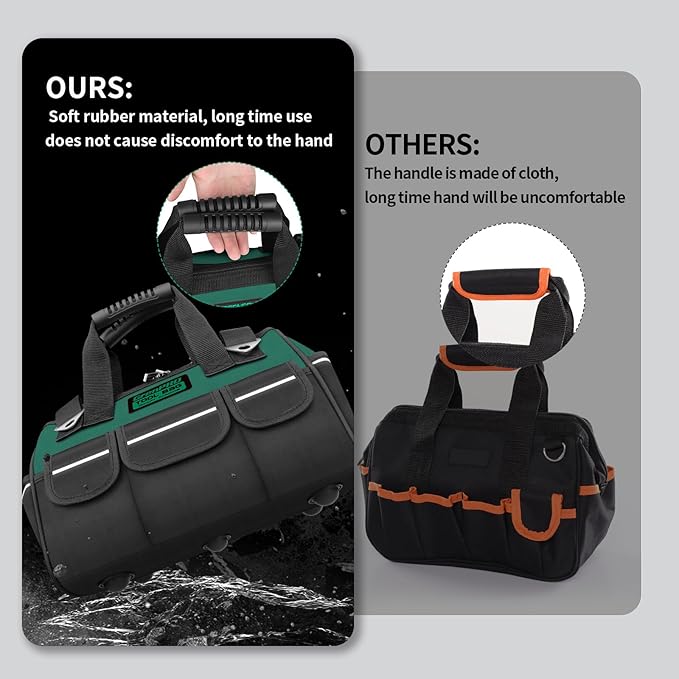 - Wide Open Mouth Tool Bag: This tool bag features wide open mouth with an internal metal frame and top double-pull zipper for easy organization and access. Just pull the zipper to open this bag smoothly and put in or take out your tools quickly when needed