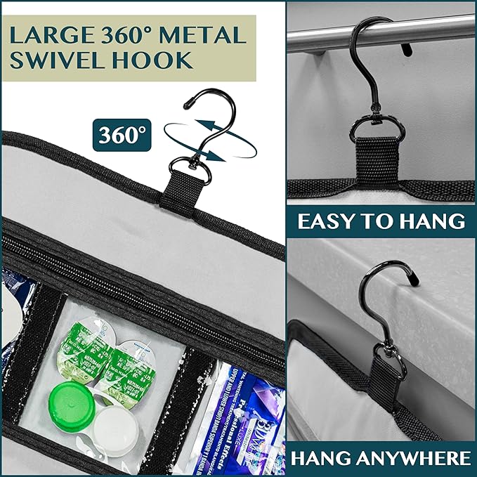 - HANGING COSMETICS TRAVEL BAG ORGANIZER: This toiletry bag for women has a hanging hook and multiple pockets that help you stay organizer during business trip, vacation travel. The hanging hook makes it easy to hang the toiletry bag to bars in the hotel shower bathroom. Unzip your toiletry bag to reveal compartments to organize your shampoo, skincare face hygiene products. This toiletry travel bag is an essential accessory for cruise in Europe, plane, Hawaii Trip, and honeymoon.