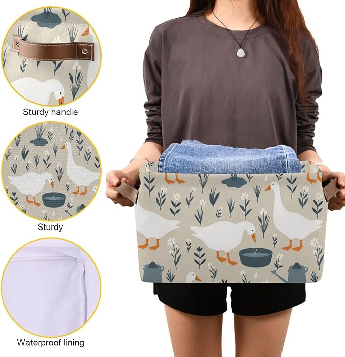 Aslsiy Storage Basket Cute Goose Nursery Bins Doodle Flowers Baby Box Canvas Clothes Shelf Basket Laundry Hamper Gift Baskets for Home Closet 1 Pcs