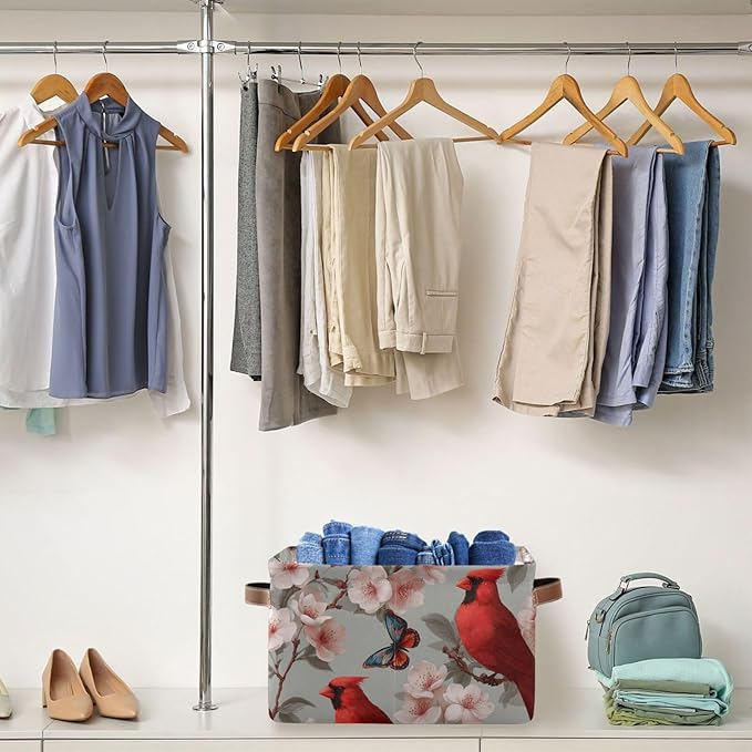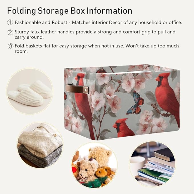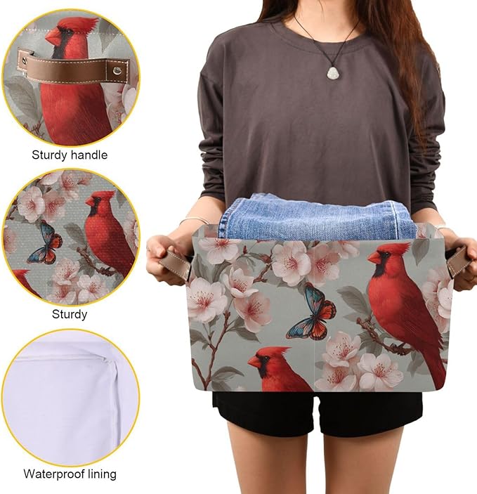 Aslsiy Storage Basket Cardinal Blooming Cherry Nursery Bins Butterfly Baby Box Canvas Clothes Shelf Basket Laundry Hamper Gift Basket for Home Closet 1 Pcs