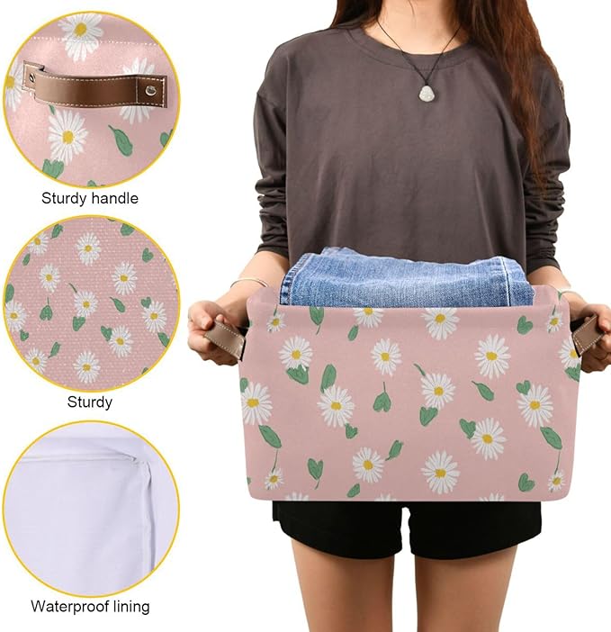 Aslsiy Storage Basket Daisy Spring Daisy Flower Nursery Bins Baby Toys Box Canvas Clothes Shelf Basket Laundry Hamper Gift Basket for Home Closet 2 Pcs