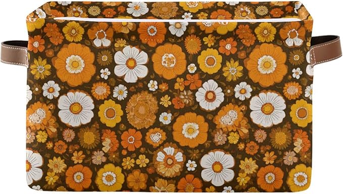Aslsiy Storage Basket Orange 60s 70s Style Nursery Bins Retro Floral Baby Box Canvas Clothes Shelf Basket Laundry Hamper Gift Basket for Home Closet 2 Pcs