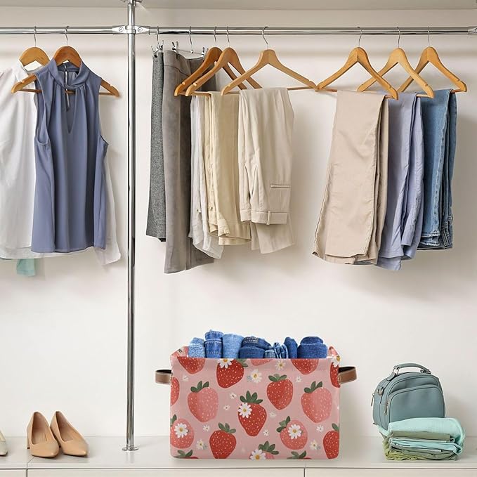 Aslsiy Storage Basket - Fresh Strawberry Pink Nursery Bins Baby Box Canvas Clothes Shelf Laundry Hamper Gift Basket for Home Closet - 1 Pcs