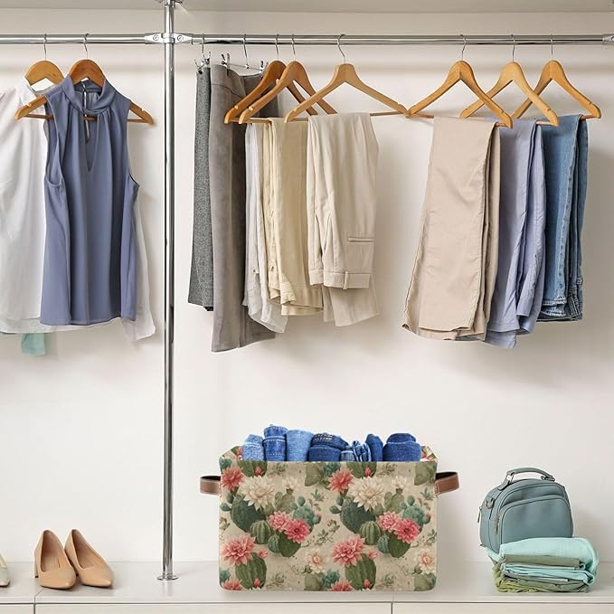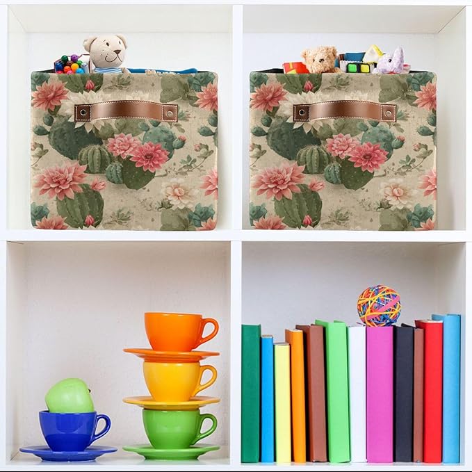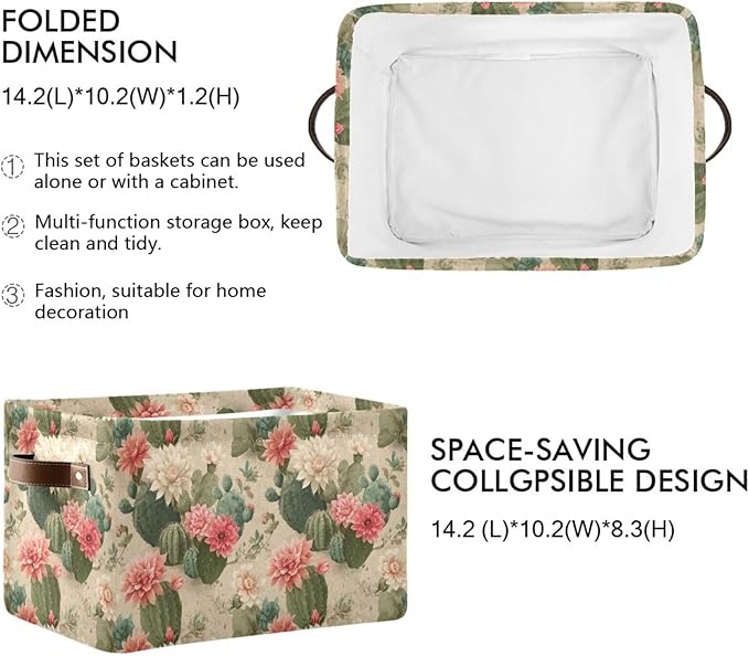 Aslsiy Storage Basket Cute Cactus Print Pattern Nursery Bins Baby Box Canvas Clothes Shelf Basket Laundry Hamper Gift Baskets for Home Closet 1 Pcs
