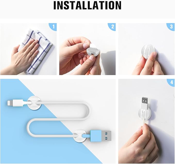 - Easy to install: Remove the protective film, stick the cord organizer, and drain the air from the contact surface. Suitable for a variety of smooth surfaces, like tiles, steel, glass, mirrors, painted wood