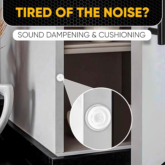 - Loud Noise Solution: Are you tired of slamming noise in your house? We have just the perfect solution for you! Vellax clear double buffer adhesive bumper pads are excellent for cabinet doors, drawers, vases - everything that makes you tick when moved. Rubber stoppers significantly reduce the banging, closing, and slamming noise, keeping your home peaceful and quiet
