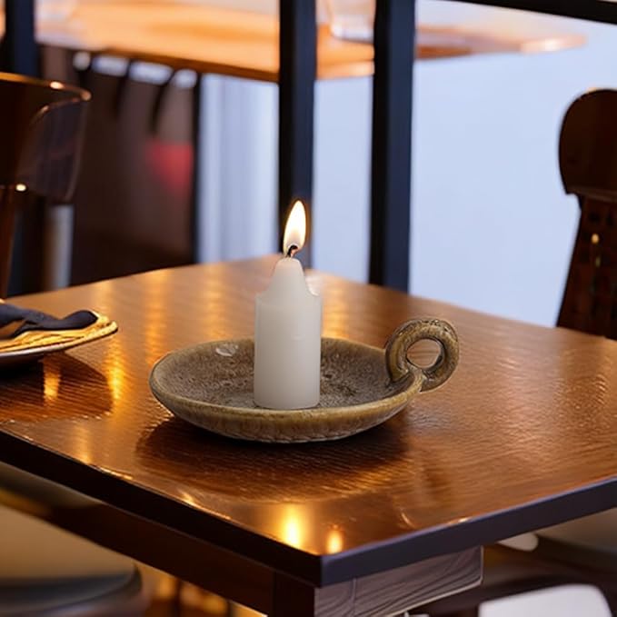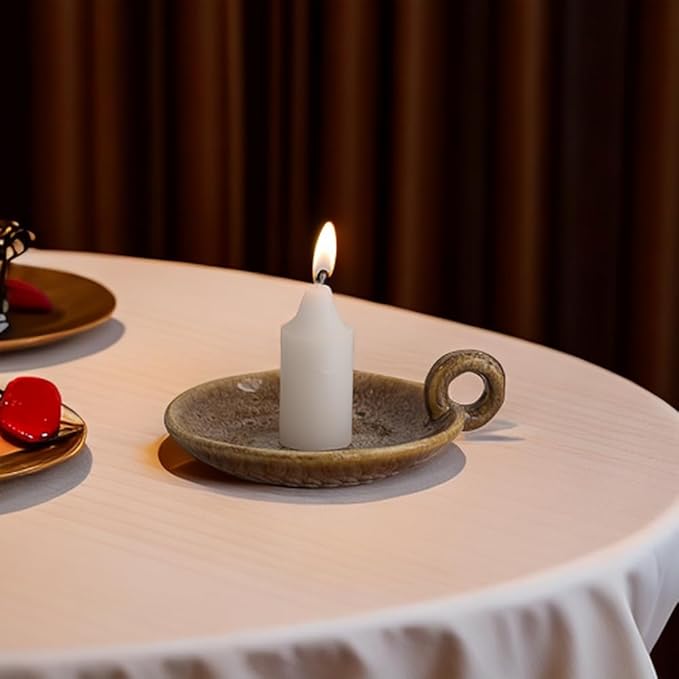 - Minimalist Stylish: The candlestick holders designed with round shape and smooth surface, featuring a large curved handle, easy to carry. Classic colors paired with rustic crafted textures and spots make this artwork looks very Elegant, mysterious, and natural. Minimalist design with exquisite art work, an great ideal for home decor, adding a touch of elegance and romance