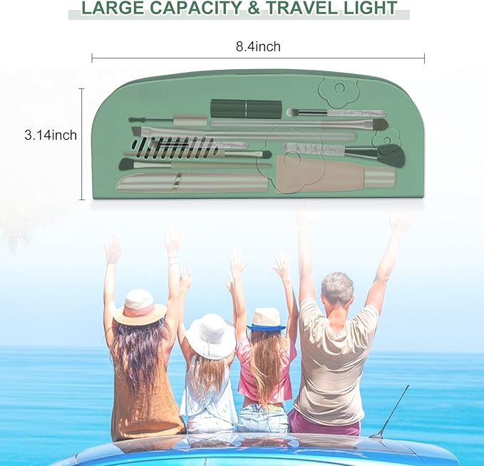 Travel Silicone Makeup Brush Holder with Breathable Lightweight Cosmetic Organizer Bag - Portable, Stylish, Versatile | Ideal Makeup Brush Case Pouch (Green)