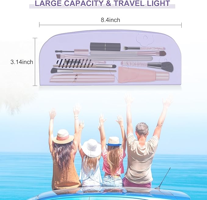 Travel Silicone Makeup Brush Holder with Breathable Lightweight Cosmetic Organizer Bag - Portable, Stylish, Versatile | Ideal Makeup Brush Case Pouch (Purple)