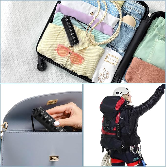 - Compact and Portable: The slim and compact design makes medication organizer ideal for everyday or travel use. Put it into your purse, backpack, and you can take a week's worth of medication with them wherever you go.
