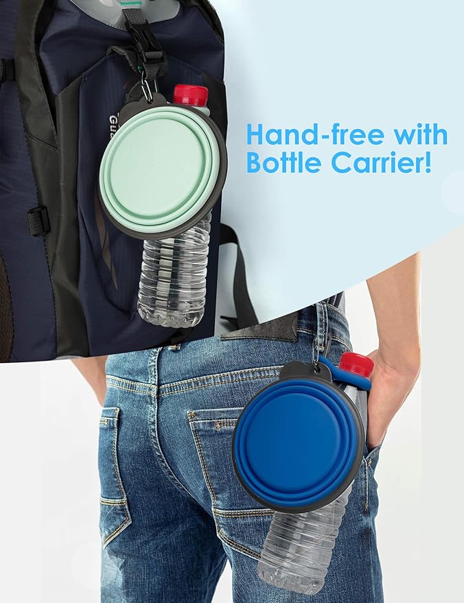 - 【Unique and Different】Aonkey dog bowl set is in a league of its own, addressing issues from feedback on other bowls. The upgraded carabiner boasts a larger, sturdier opening, reducing the risk of breakage. Plus, enjoy the added convenience of bottle carriers, compatible with most cola-shaped water bottles in the market.