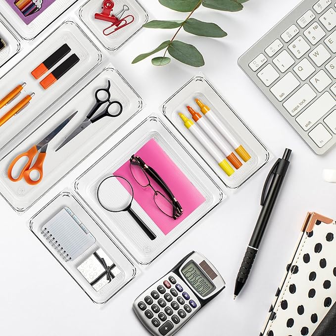 - Non-Slip Pads Included: Forget about sliding issues, our clear drawer organizers come with non-slip pads. Effortlessly stick them to the trays' bottoms to ensure stability when opening and closing drawers
