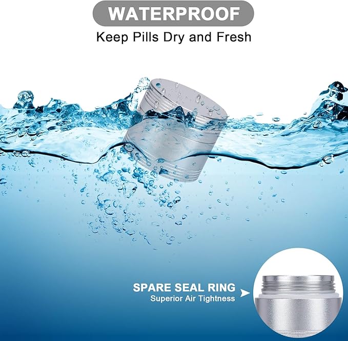- 【Waterproof & Airtight】Thanks to its compact thread and silicone gasket, this pill box is completely waterproof and airtight. The exterior of lid features texture that enhances grip and makes it easy to open and close.
