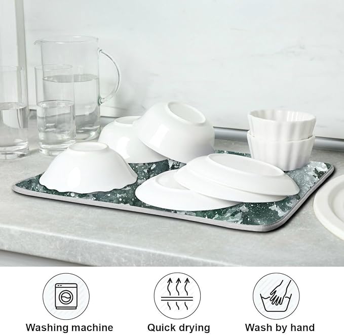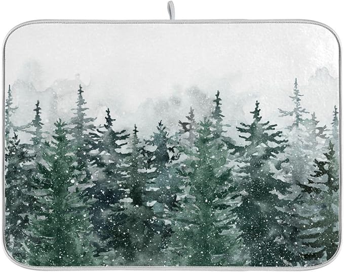 Winter Forest Scenery Dish Drying Mat for Kitchen Christmas Tree Snow Xmas Microfiber Drying Mats Absorbent Reversible Dish Pad Medium Dish Draining Mat 16x18 inch