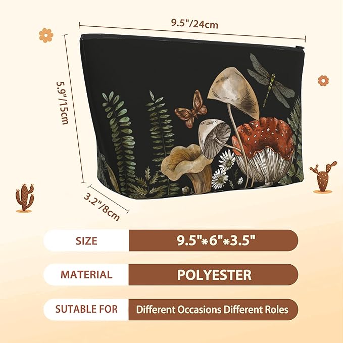 Cute Magic Mushroom Cosmetic Bag Forest Plants Makeup Bags,Travel Make up Bags for Women Girls Cute Zipper Pouch Toiletry Organizer Bag Travel Essentials