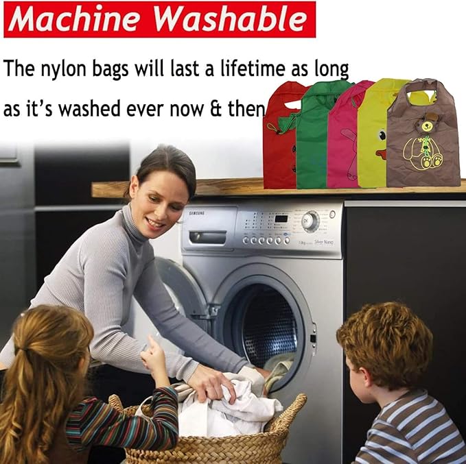 - Save Time and Money Totes: reusable shopping bags are machine washable. Using foldable shopping bags not only saves the cost of buying plastic grocery bags
