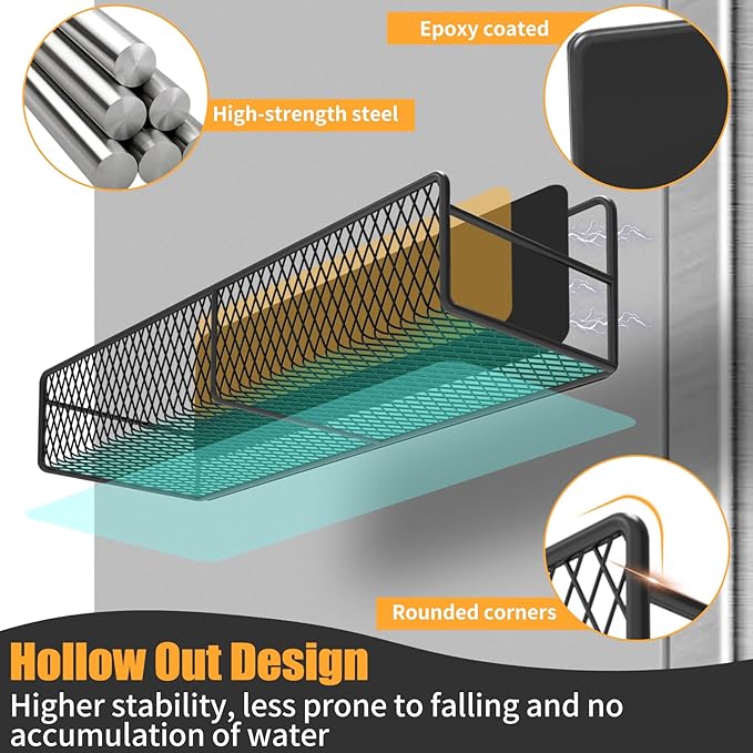 - Strong Magnets, No Drilling Needed. Powerful rubber magnets on the back hold tight to your fridge, washer, or any metal surface – even when fully loaded. No tools, no hassle – just stick and go. Perfect for renters or anyone who loves a quick setup.
