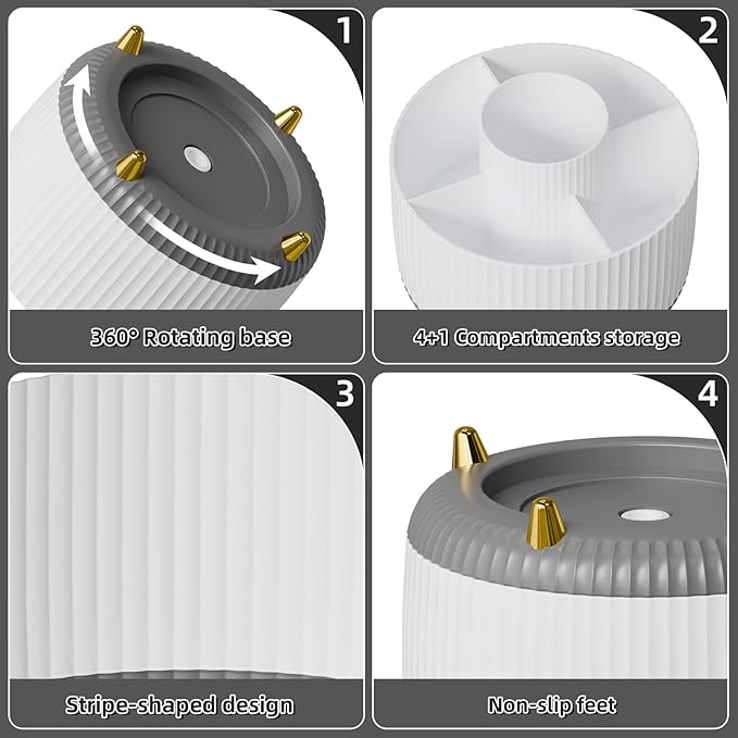 - 【Multipurpose Desktop Organizer】: This rotating storage organizer is perfect for pencils, cosmetics, bathroom necessities, toiletries, and even kitchen utensils. Try it in your craft room, playroom, laundry/utility room, and even inside bathroom cabinets or under the sink; Store extra office supplies like painting pens, correction tape, scissors, TV Remote, and more; Even headphones or a charger will no longer be lying around in the future! Maximize your vertical space and keep your desk clear