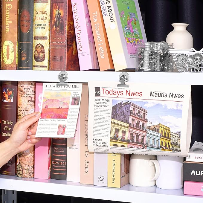 - 🩵 【Premium Material】Our magnetic clip is made of high quality metal and durable stainless steel construction, so it is magnetic, rust resistant, durable, and can stick 25 pieces of A4 paper to the magnetic surface.Sorting through the list, the flow chart of recipes, such as your board or the refrigerator to keep clean and tidy.