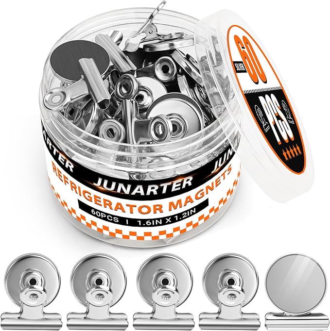60 Pack Magnetic Clips Heavy Duty, Silver Magnet Clips for Fridge, Refrigerator Magnets, Strong Magnetic Clip, Scratch Free Magnets with Clip for Whiteboard, Refrigerator, Locker