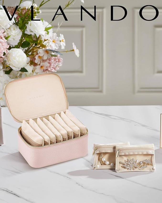 Vlando Gifts for Women, Jewelry Box with 8 Velvet Jewelry Bags Travel Jewelry Case for Women Girls Jewelry Organizer Necklace Rings Earrings Bags Gift Ideas for Birthday Bride (Pink)