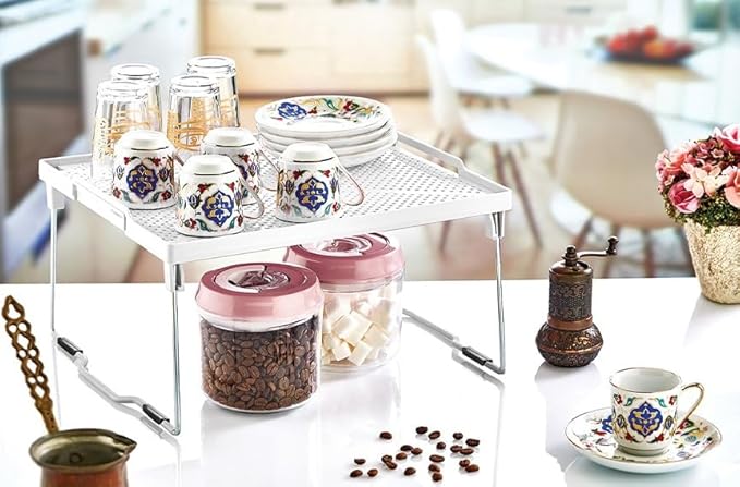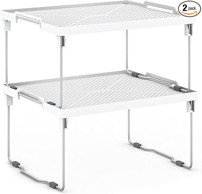 ums Kitchen Shelves Cabinet Organizer, Stackable Freezer Rack, Cupboard Box Organizer, Shelf Riser, Usable Storage Rack for Spice, Fridge Shelf Riser, (12x11 inch), Pack of 2