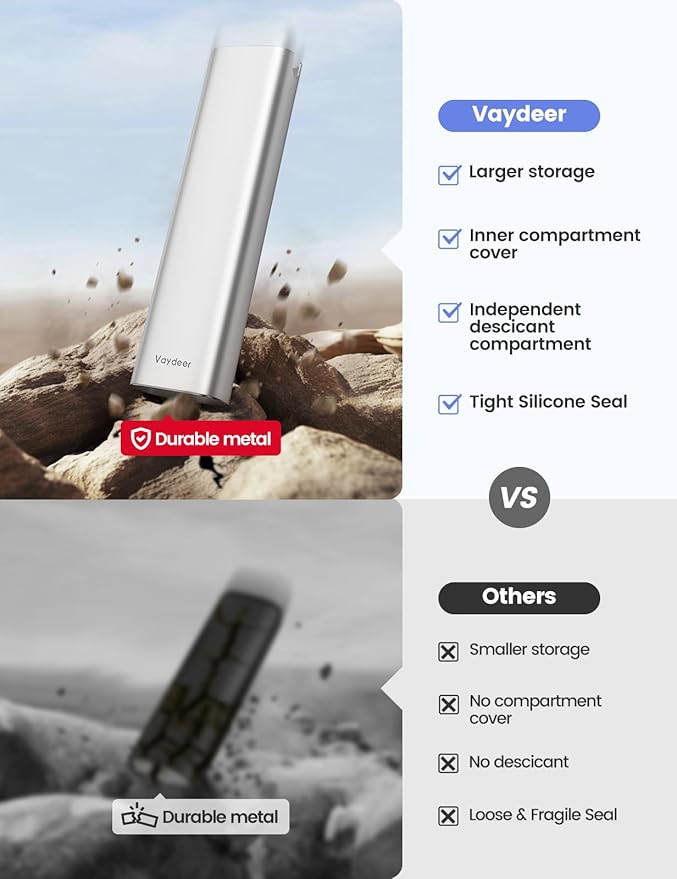 VAYDEER Metal Weekly Pill Organizer – Moisture-Proof Travel Pill Organizer with Built-in Desiccant Chamber and Airtight Lids – Large-Capacity Pill Box for Vitamins, Medicines & Supplements (Rose Gold)
