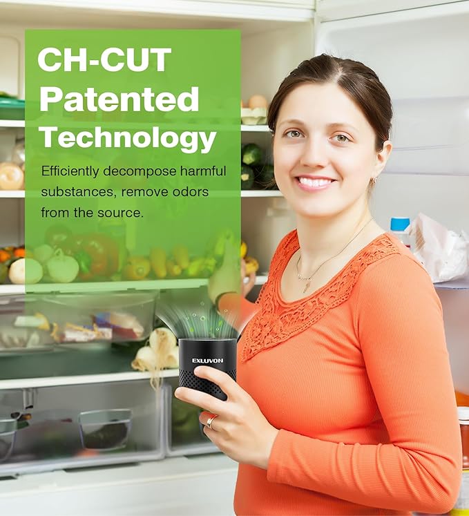 - Advanced Technology Fridge Deodorizer:Are you still troubled by the difficult-to-remove odors in your daily life? Choose Exluvon air purifier, which can efficiently decompose harmful substances in the air, eliminating odors at the source with a more thorough and long-lasting effect. Its core technology has been recognized with multiple international awards, worthing your trust.