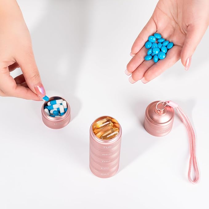- COMPACT AND PORTABLE: The slim and compact design makes daily pill organizer ideal for everyday or travel use. Put it into your purse, backpack, and you can take a week's worth of medication with them wherever you go.