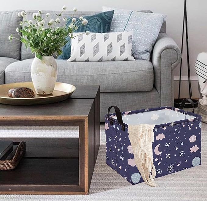 - 【Multi-Application Home Essentials】The moon deep blue laundry basket that carries not only used bathroom towels, laundry,bed sheet, boys and girls sports underwear ,shoes,but also easily organizers for toys,stuffed animals,books,yoga mats ,etc.They’re spacious enough to storage your stuffs neatly inside