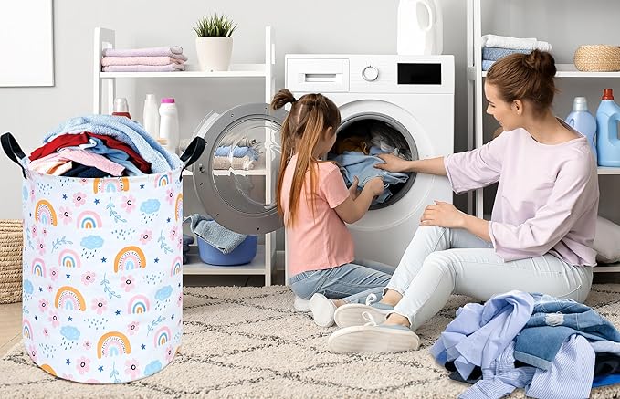 Rainbow Print Round Laundry Hamper Storage Basket Bins Clothes Nursery Hamper for Home, Gift Storage Bins with Handles