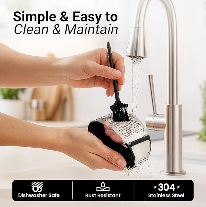 - CLEAN IN SECONDS: This garlic press rocker can be cleaned by putting under a tap of running water and scrub with a soapy cloth or pop it in your dishwasher. Either way, it will come out 100% clean and free from garlic residue.