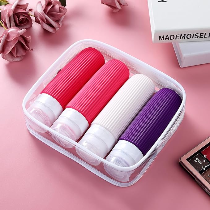 - TSA carry on approval: 4 pack 3 oz silicone travel bottles, very suitable for shampoo, conditioner, shower gel, lotion, hand sanitizer and shower gel. It is equipped with a high-quality zipper transparent wash bag, which saves space and allows you to travel long distance freely like a professional.