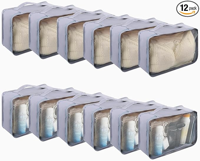 12 Pcs Packing Cubes Luggage Organizers Small Mesh Clothing Underwear Bag Foldable Laundry Bags for Travel Hiking Camping Backpacking