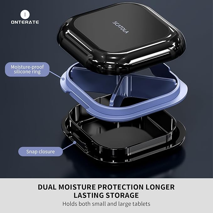 - 【High Quality Material】: The pill container for pocket is made of high-quality ABS material, no chemical smell, durable, anti-fall, moisture proof and not easy to break, it can be used for a long time. The travel pill case has a thickened silicone ring, which not only provides a tight closure but also keeps your pills dry for longer.