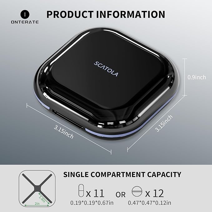 - 【Portable Travel Pill Organizer】: Compact design with simple appearance, lightweight and elegant, our pill container can be easily put into your pocket, suitcase, handbag, allowing you to take it with you wherever you go. Pill box size: 8x8x2.4 cm/3.15x3.15x0.95 inches, it can hold 11 capsules or 12 regular tablets.