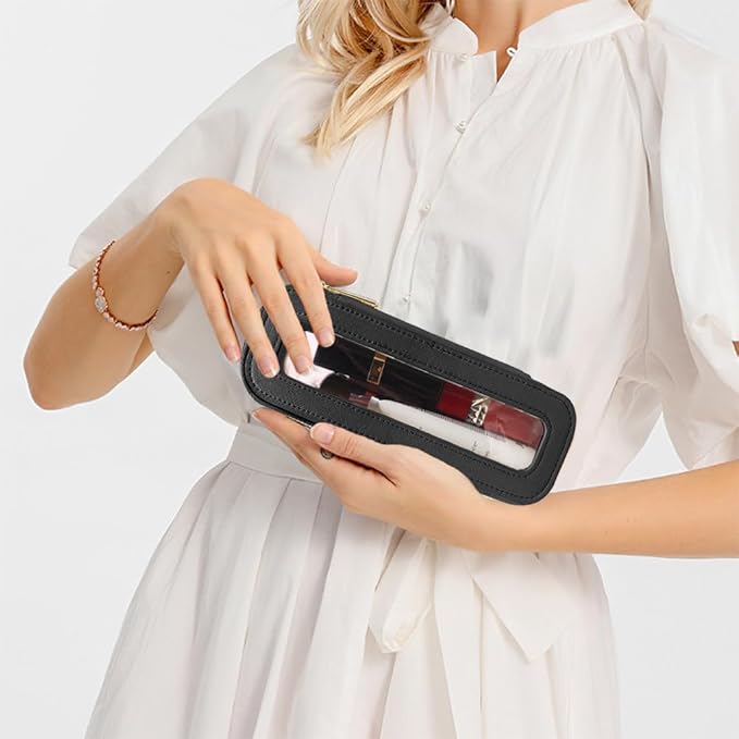 - Pick Quickly: You will get 1PCS travel makeup brush holder which is designed with a clear PVC window can clear see you beauty cosmetics inside,all items at a glance,you can quickly select the required cosmetics. Size: 5.1“*5.1”*1 .9“