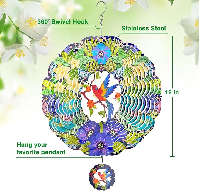 - Fine Made: These wind spinners are crafted with high-quality stainless steel, making them durable and long-lasting. The hummingbird patterns are printed using UV technology, resulting in precise and vivid colors that stand out. To ensure longevity, both sides of the spinners are coated with a protective layer that makes them resistant to rust and moisture. Additionally, the edges of the spinners have been polished to make them smooth and safe for handling.