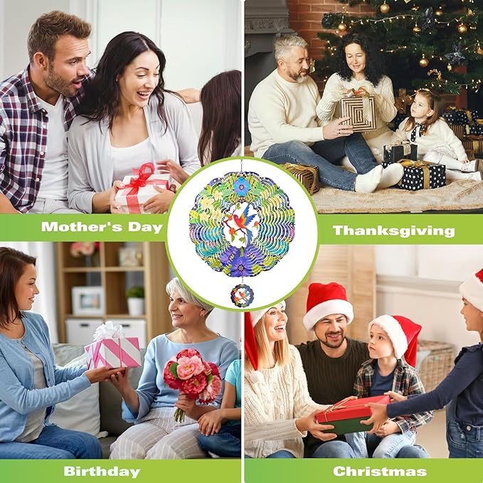 - Great Gift Option: Hummingbird wind sculptures can make for a great gift option for special occasions, such as Mother's Day, birthdays, Thanksgiving, and Christmas. Their beautiful patterns, vivid colors, and symbolic representation of hummingbirds can make them an ideal gift for your family members, like your mom, grandma, sister, etc. By gifting them a hummingbird wind sculpture, you can convey your wishes and love for them on these special days.