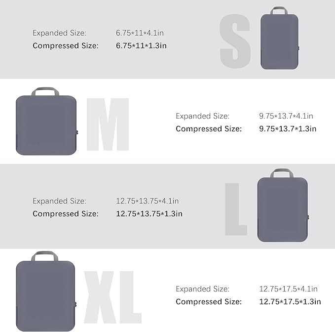 4 Set Compression Packing Cubes Travel - Travel Accessories Expandable Packing Organizers for Carry On - Essentials Luggage Bags - Dark Grey