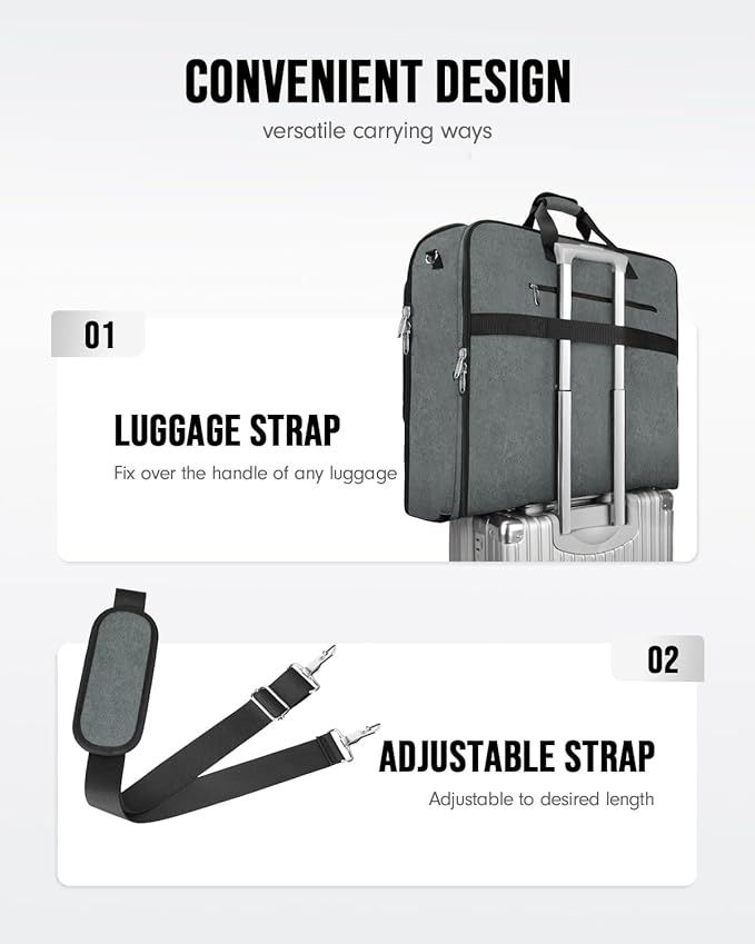 - VERSATILE AND PROFESSIONAL TRAVEL COMPANION: Our suit bag is the perfect blend of style and functionality. With a detachable shoulder strap, convenient carrying handle, and a pass-through belt for attaching to trolley luggage (weighing under 3 pounds when empty), it offers comfort and versatility. Suitable for weekend getaways, parties, and special occasions. Its classic design also makes a great choice for fathers day gifts, birthdays gifts, and a versatile option for both him and her
