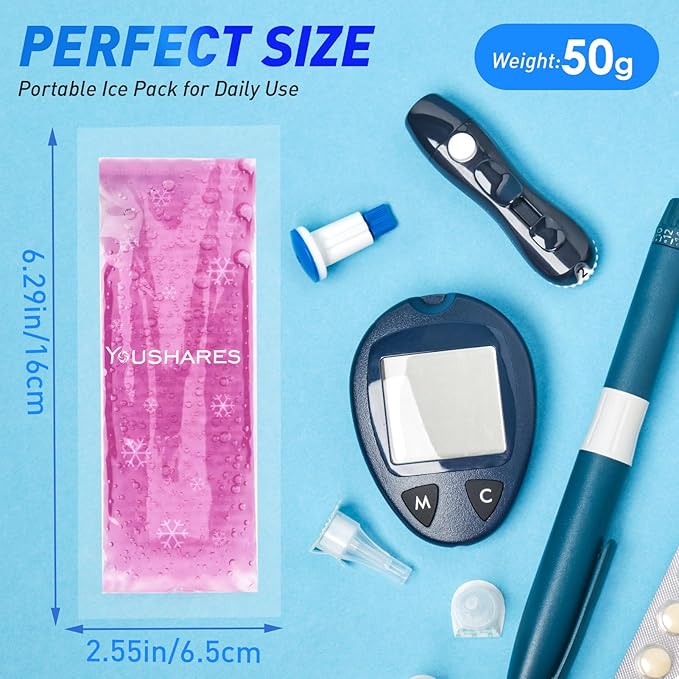 - 【Perfect Size for Most Insulin Coolers】Measuring 6.3 x 2.6 inches, our insulin ice packs are designed to fit into most insulin cooler travel case, ensuring your diabetic supplies stay at the optimal temperature. Ideal for maintaining the effectiveness of your insulin on the go.