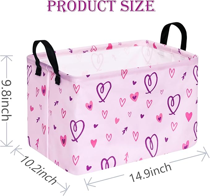 - Design and Pattern: This rectangle storage basket boasts a charming design with different size purple heart as its main theme. These lively patterns not only capture children's attention but also add a touch of playfulness and liveliness to the basket. Personalized design styles are highly sought after, and this laundry basket will undoubtedly add a whimsical and cozy atmosphere to your home.