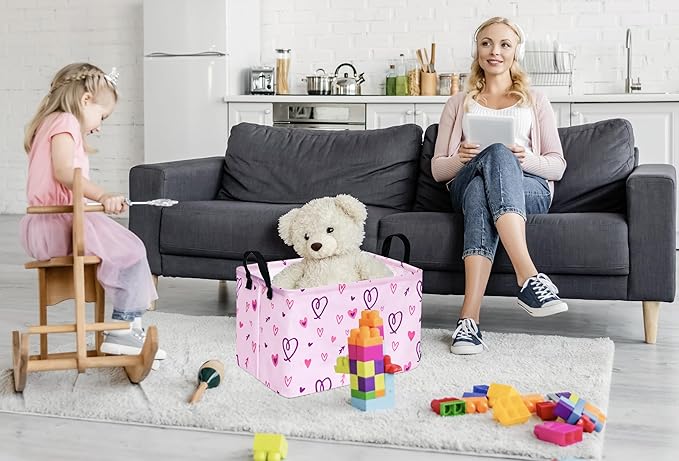 - Size and Suitable Scenes: Measuring 14.9 inches (length) x 10.2 inches (width) x 9.8 inches (height), this rectangle nursery storage hamper is perfectly sized for organizing girls' toys. where households are often compact yet vibrant, a practical storage basket is essential for tidying up household items. Whether placed in a children's room, living room, or bedroom, this nursery storage basket offers a convenient storage solution.