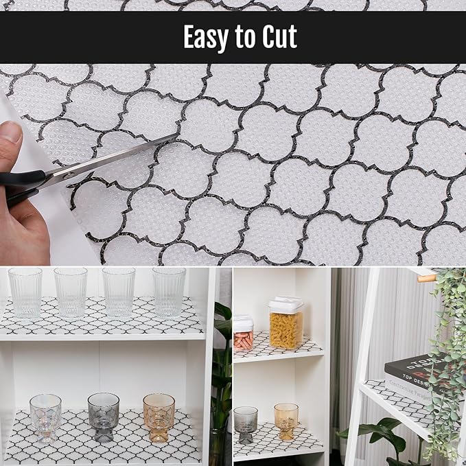 - Practical Design: Made of waterproof and washable material, this kitchen cabinet liner is super easy to clean, when get dirty just wipe or wash with wet towel and dry it before use, making your daily cleaning work much easier and saving a lot of time for you