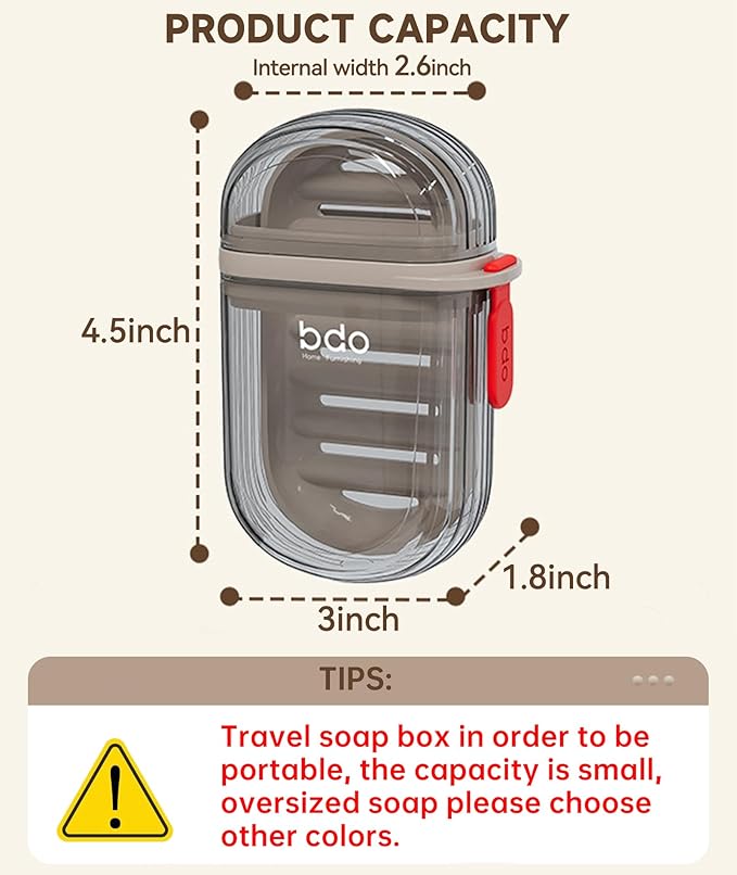 - LEAKPROOF - The soap box comes with a sealing lid equipped with a tight-sealing groove, ensuring a perfect fit with the soap box. Feel confident placing it in your travel bag without worrying about the lid accidentally opening.